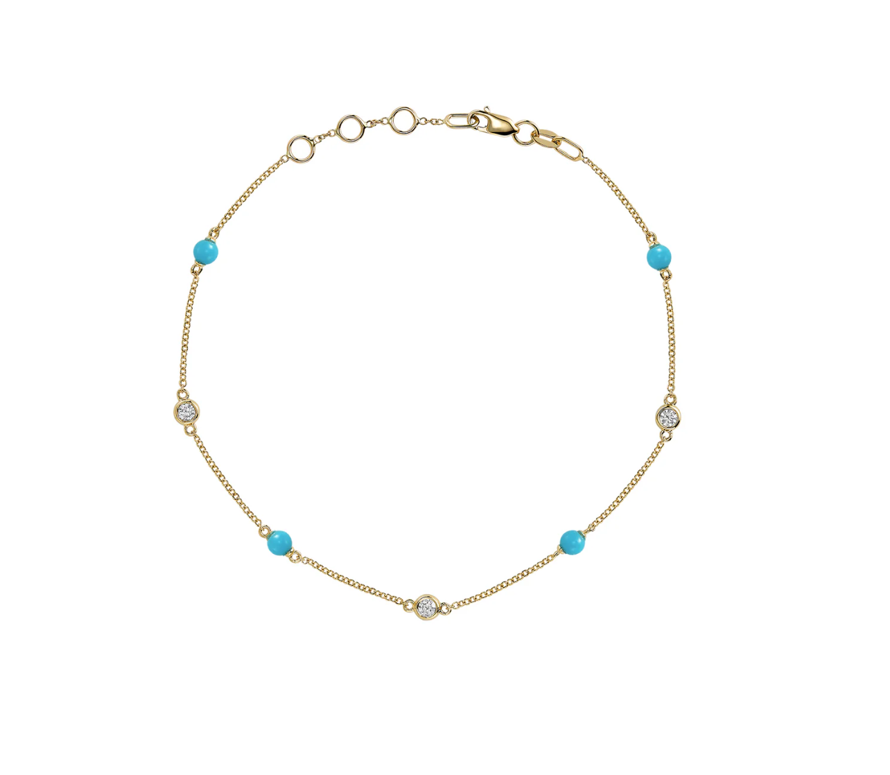 Mini Pearls & Turquoise Bezel Diamonds Station Bracelet