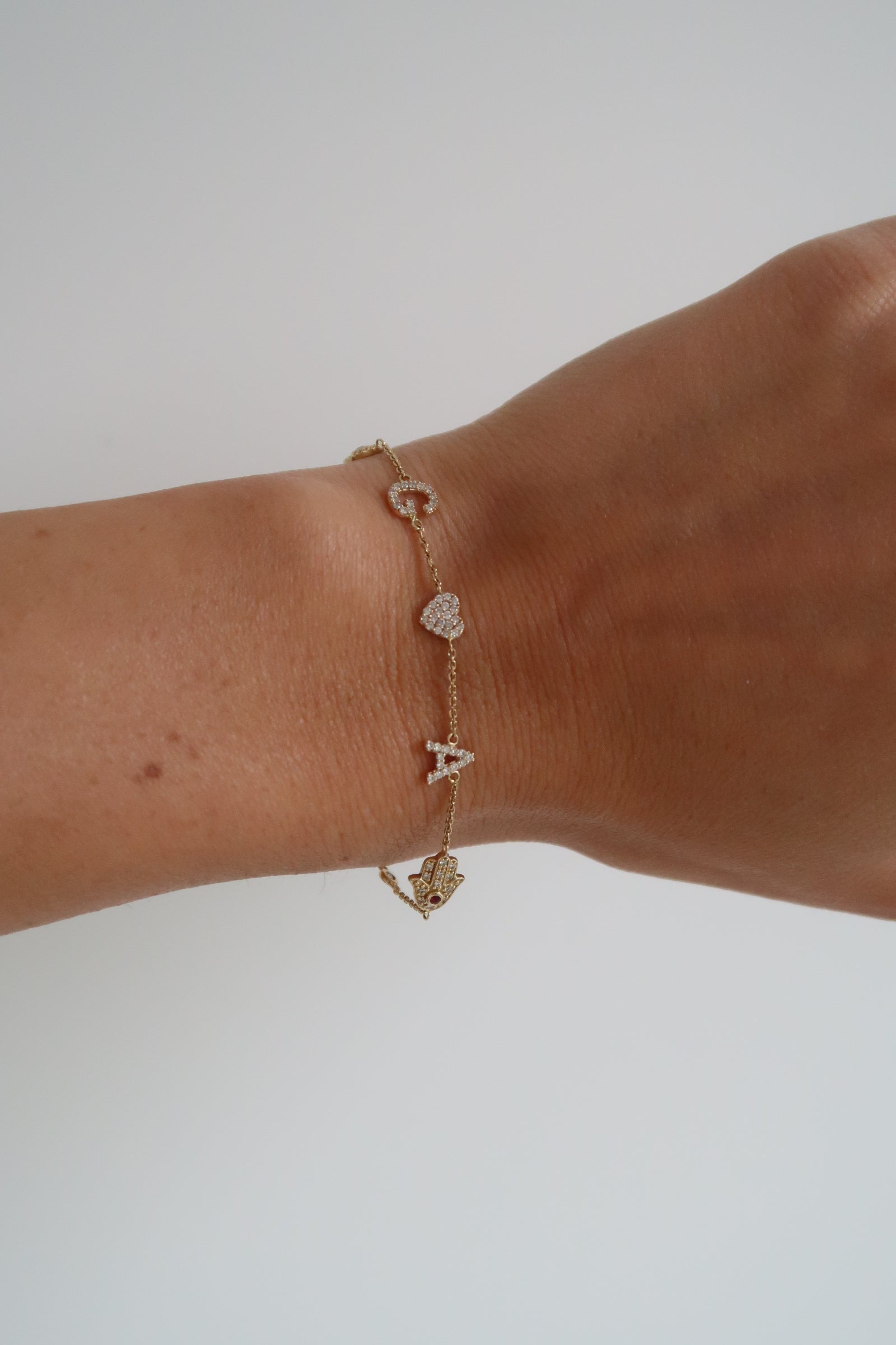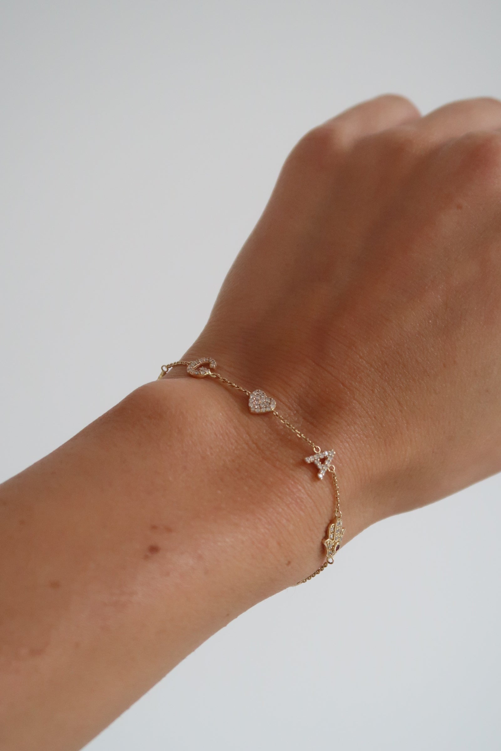 Charms available: Evil Eye, Pave Heart, Hamsa, Initial.
